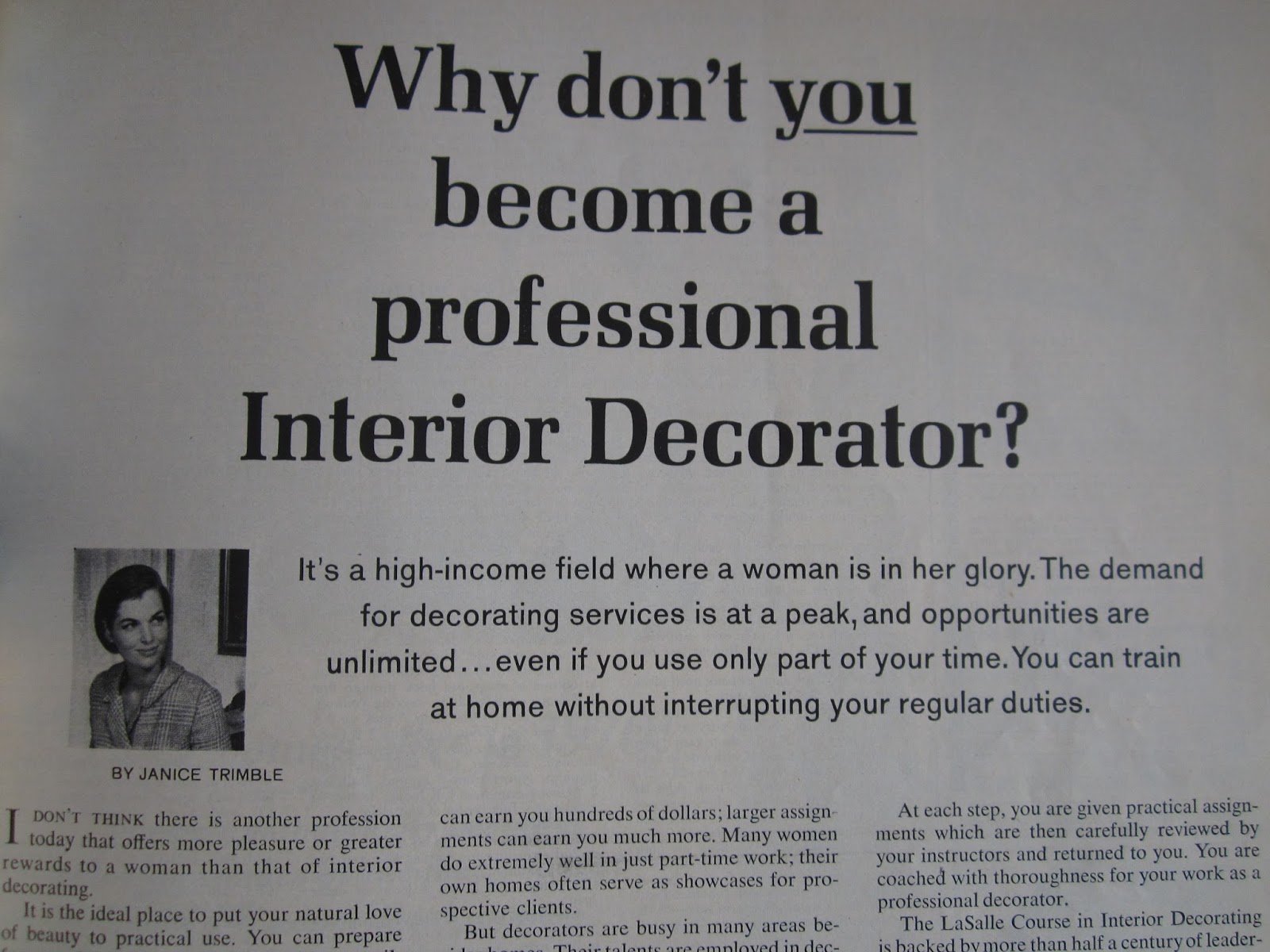 Somehow, I feel that my talents as an interior decorator would not have me in my glory.