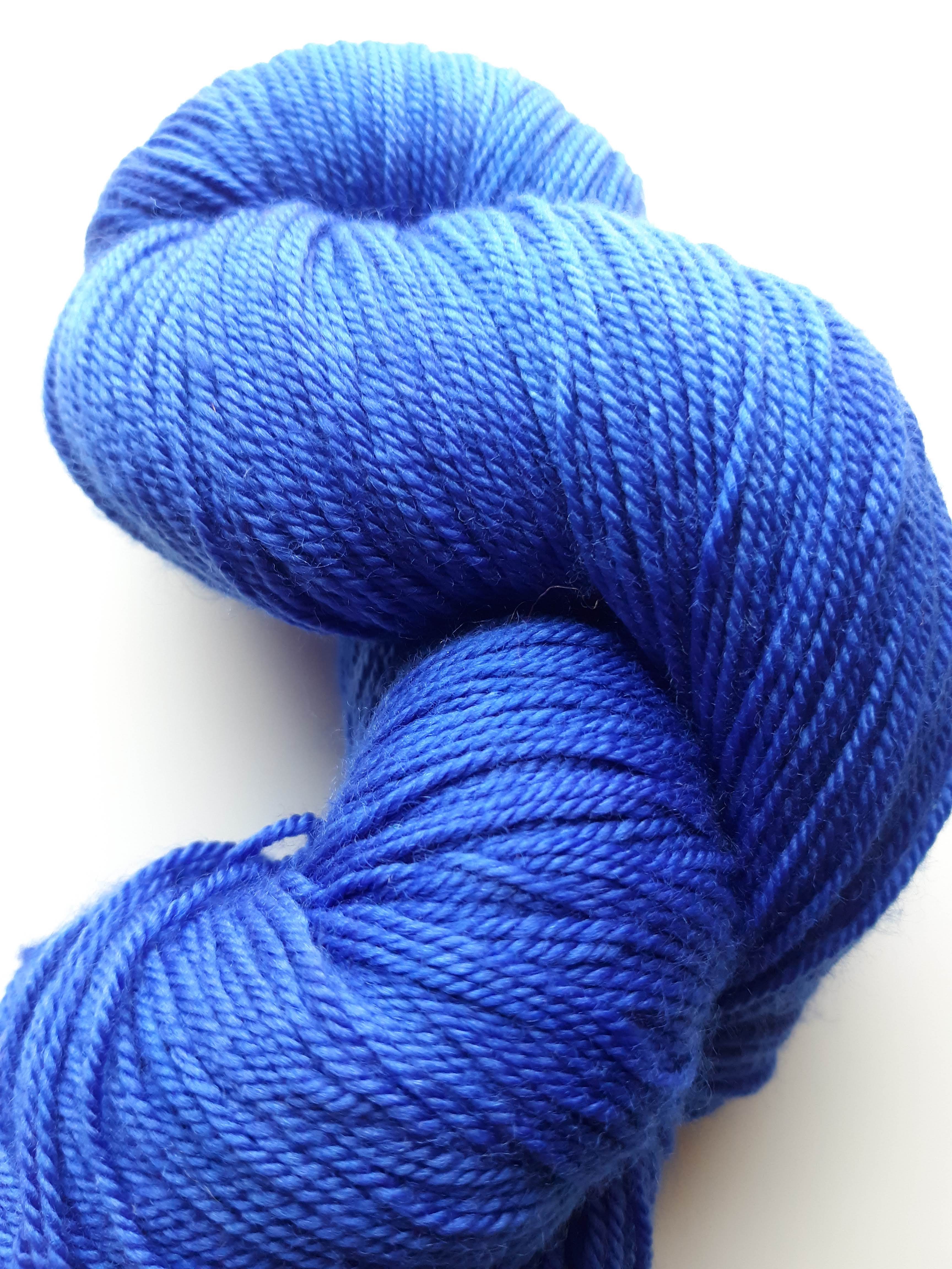 Bliss (Ravelry link) is merino with silk and cashmere, and feels just as good as you would imagine.There was one ball left of this lovely cobalt blue, 30% off.