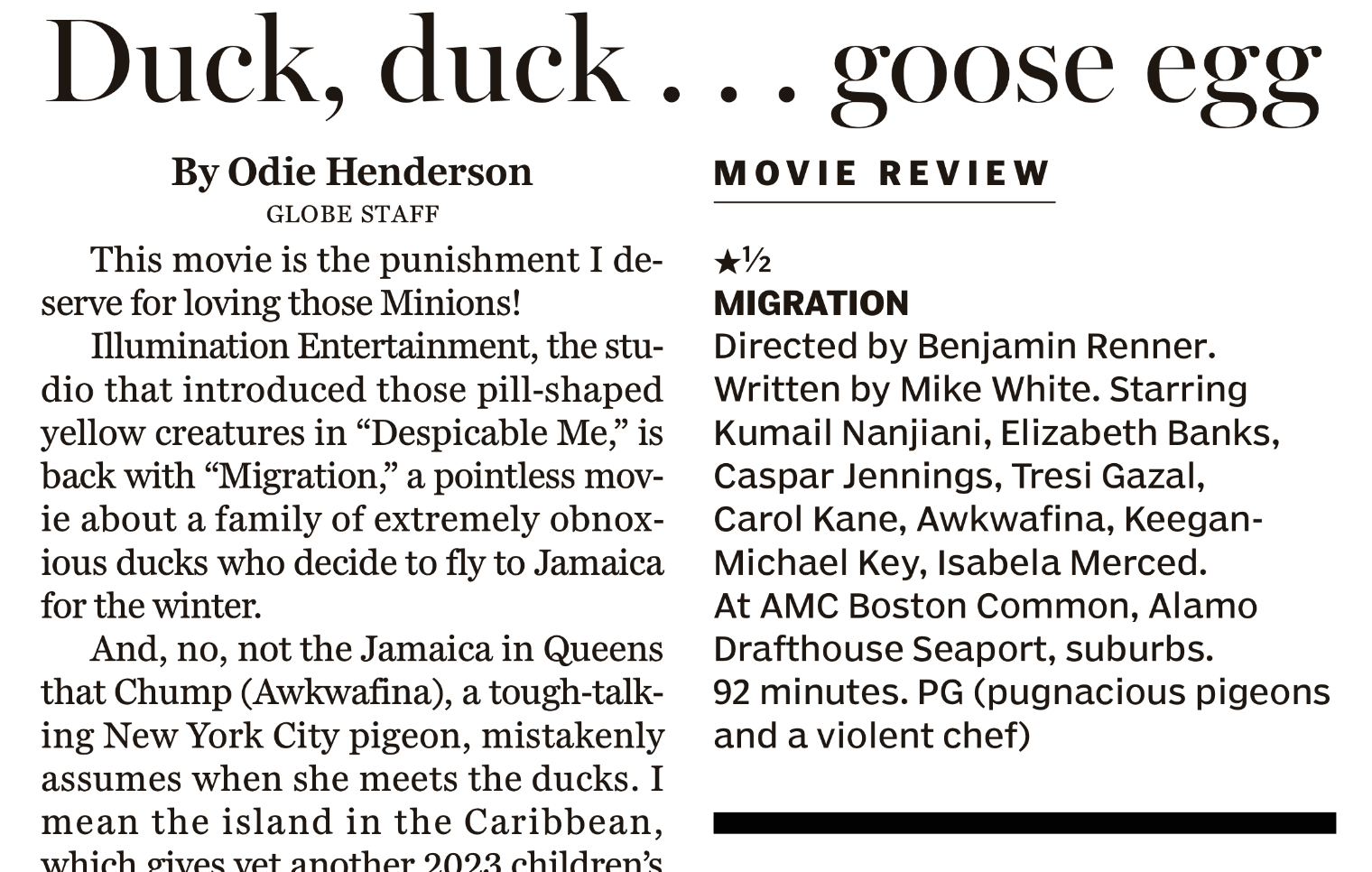 It's been a while since I did these! If you're new, though I live in Florida now, I still read the Boston Globe, and I discovered at some point that their movie reviews add often hilarious notes to the ratings of new movies, so I started sharing them here.